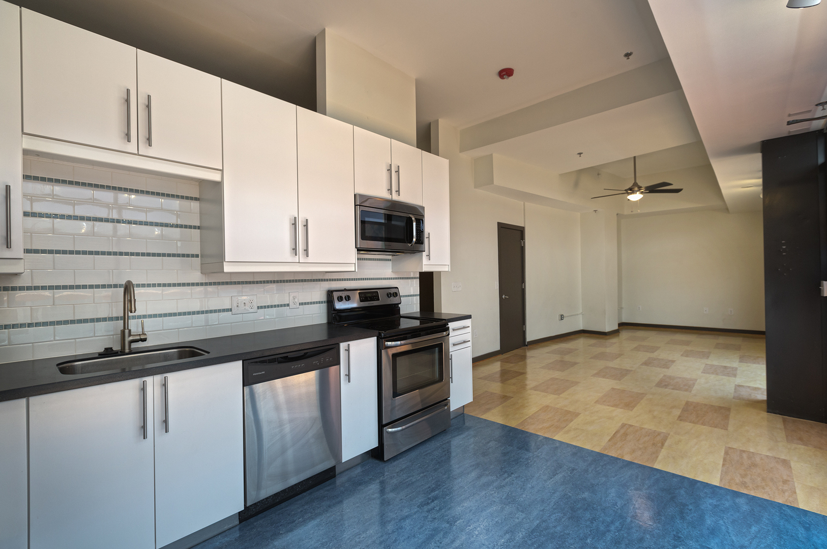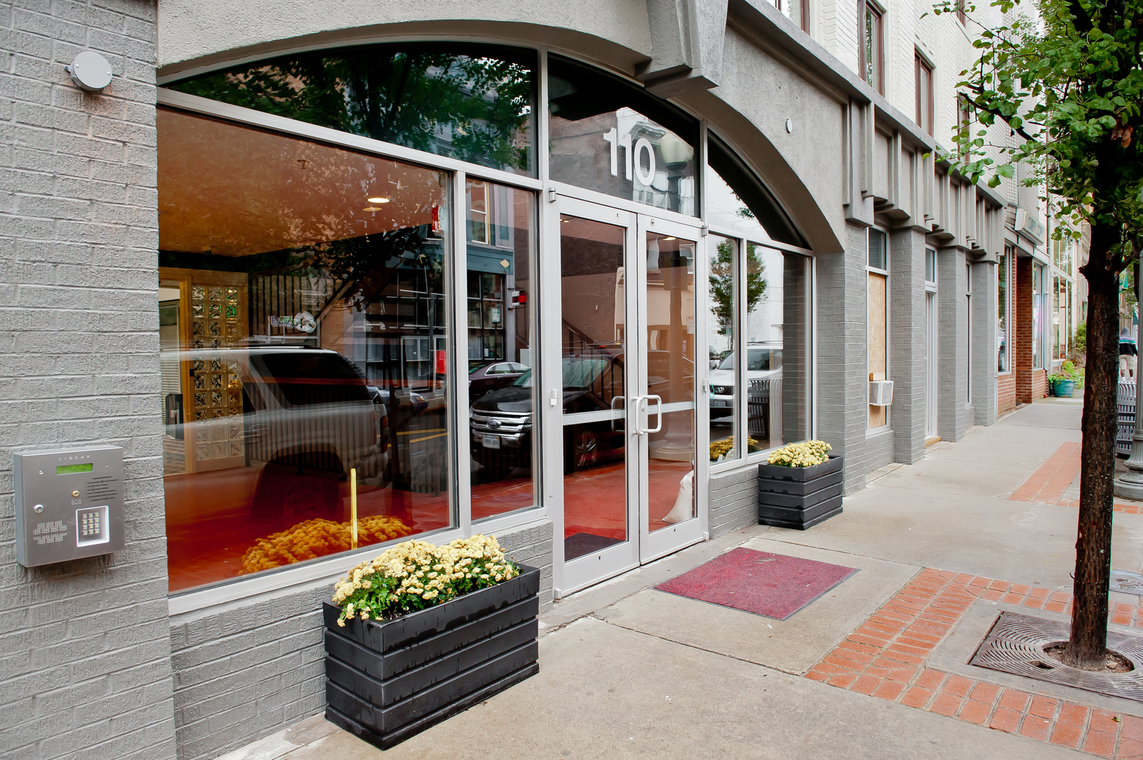 Overall, the building features 28 Apartments, 9 Artist Studios (including a performance arts studio, classroom space, common arts area, and gallery/exhibition space), a rooftop deck/Lounge, a dramatic 75-foot skylight that illuminates the interior three-story open atrium, and 2 Street-Level Commercial Spaces.