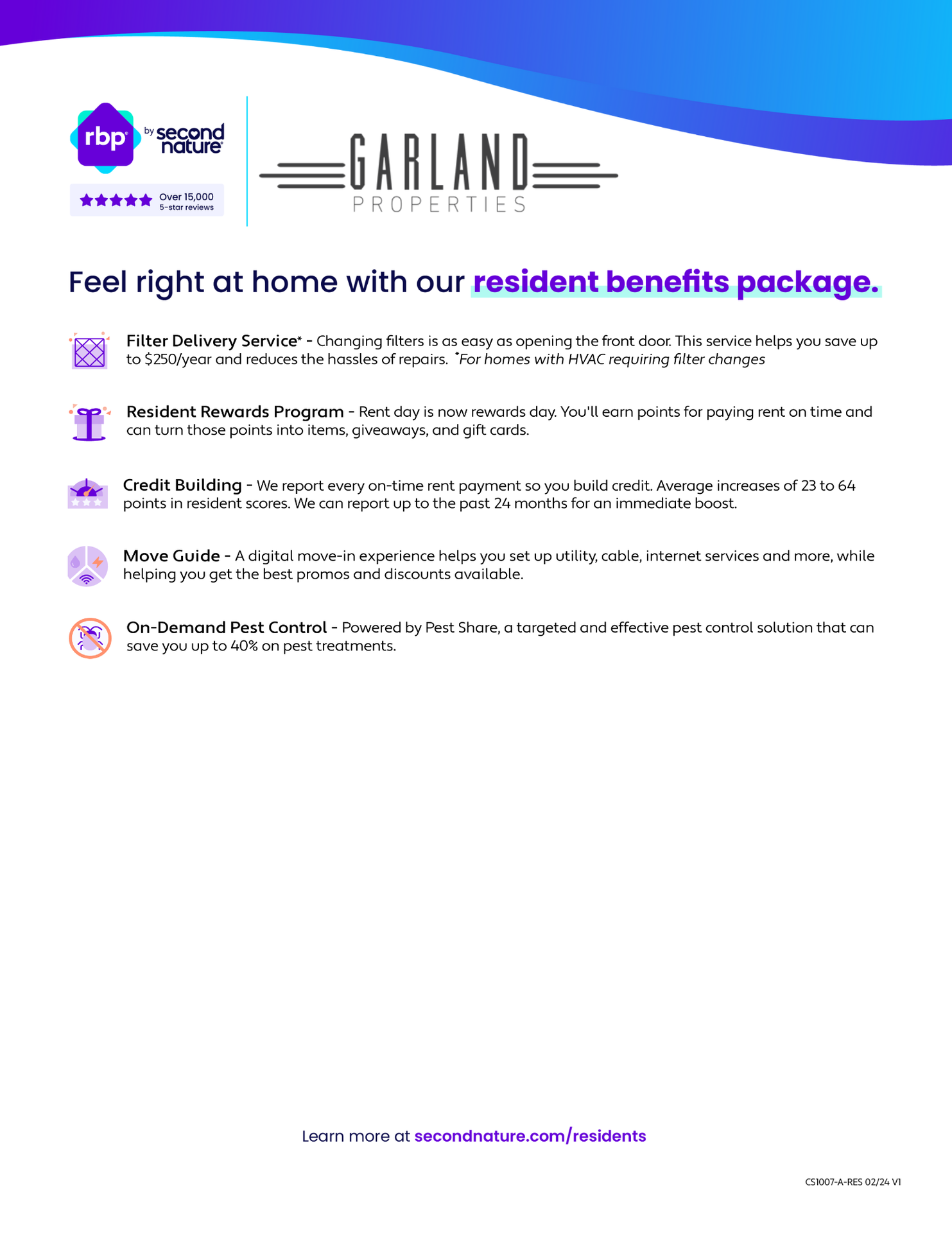 Every apartment comes with our comprehensive Resident Benefit Package, designed to make life easier, more convenient, and more connected. Your package includes:
